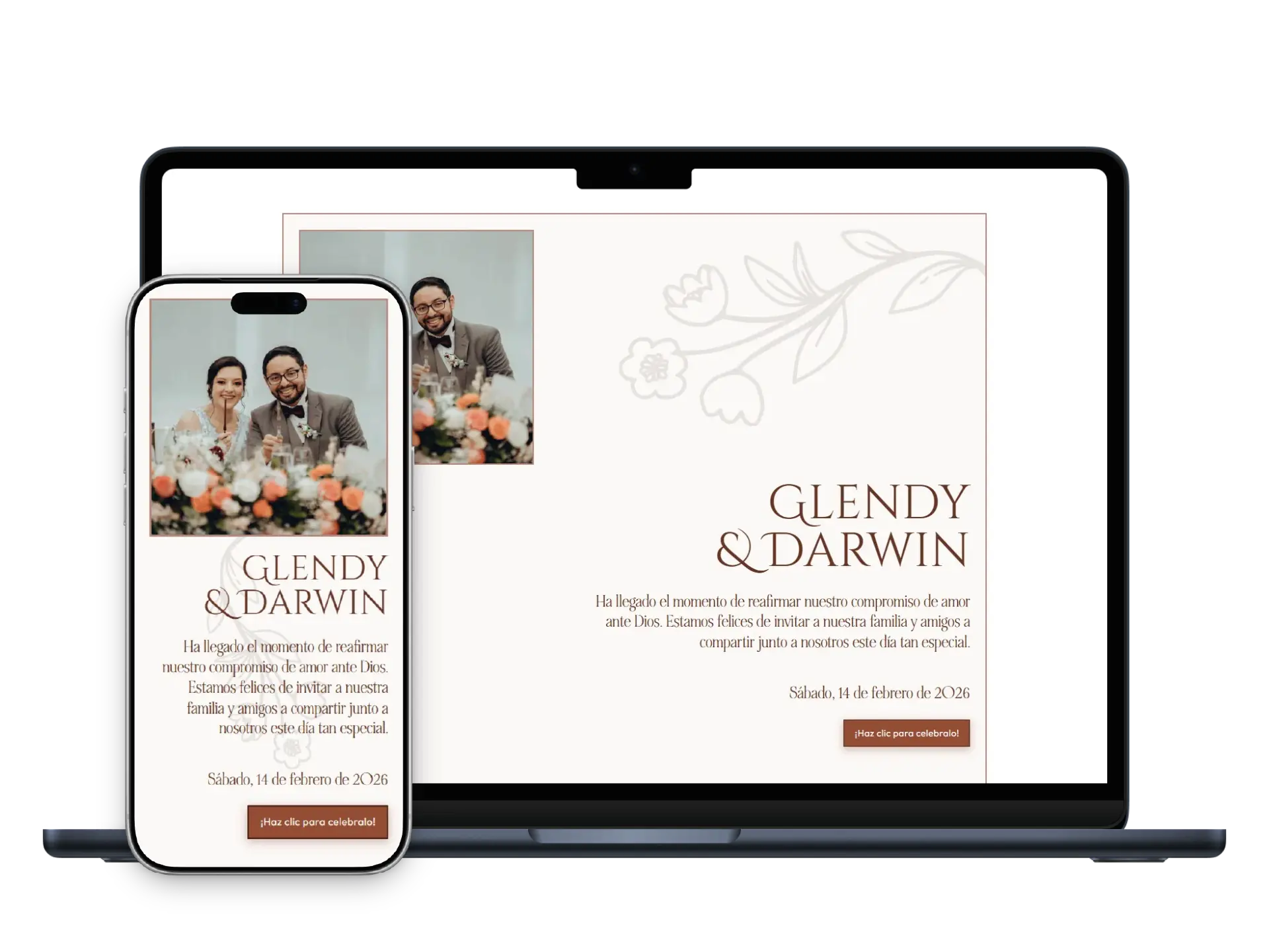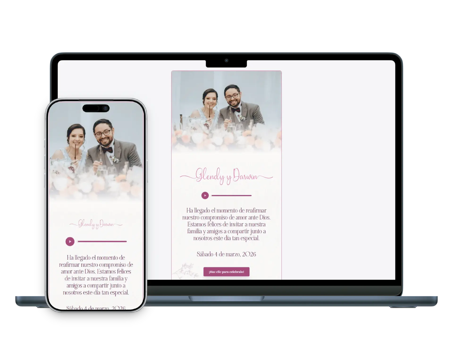 Al ser un enlace a un sitio web, tu invitación estará siempre a disposición de ti y tus invitados, ya sea por web o móvil.